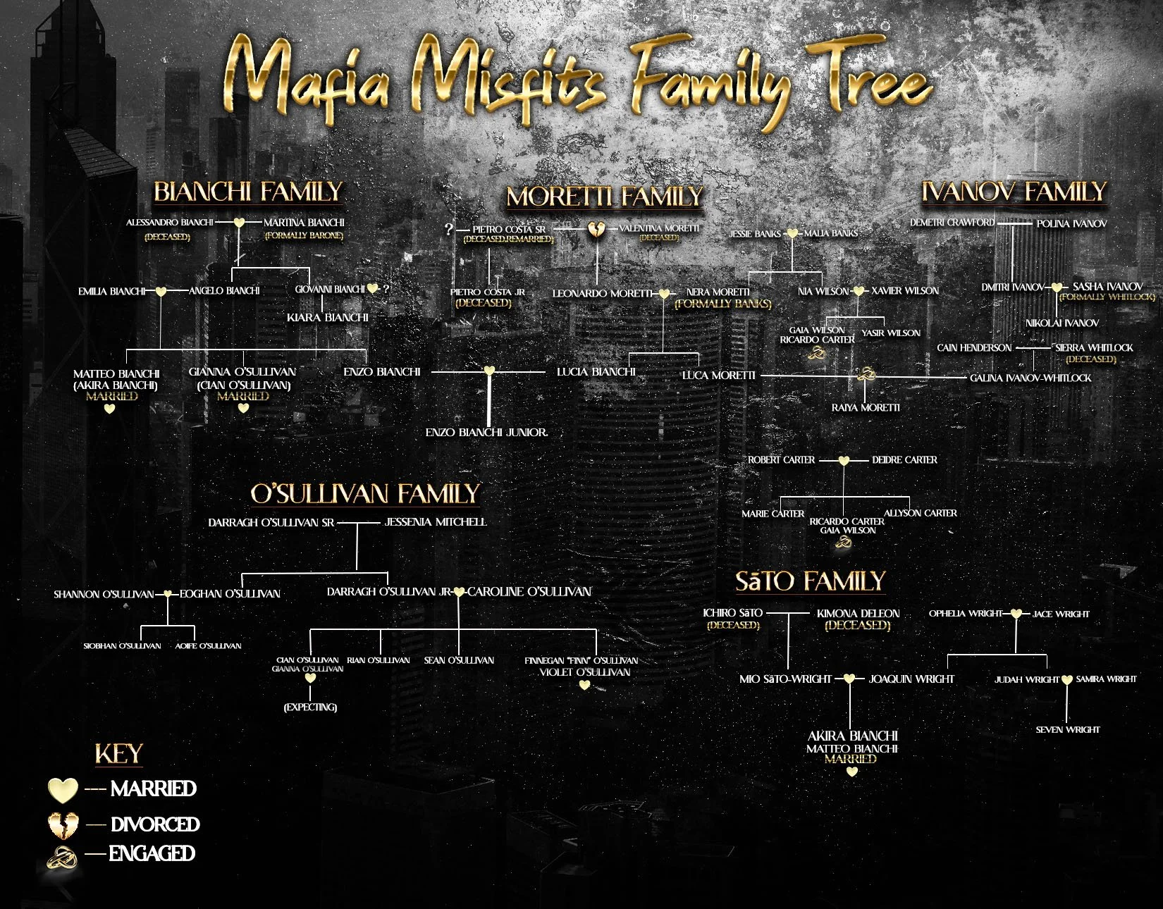 Akira Wright is married to Matteo Bianchi (Bianchi Crime Family).